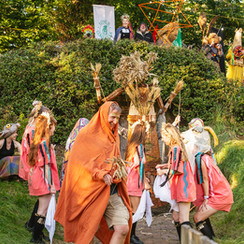 In 2023 Moseley Arts & Folk Festival commissioned ILdiko to create a giant wearable Corn Dolly sculpture. The piece has brought lots of joy to the pagan harvest celebration. The Dolly was the centre piece of the procession alongside morris dancers (@boss.morris) and other mythical creatures. The Moseley Arts & Folk Festival took place in Moseley Park & Pool on the 1-3rd September, 2023.